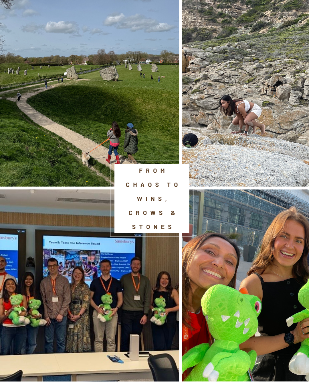 Image: A birthday spent at Avebury Stones. Meeting my edge with a yoga Crow posture & AI Hackathon - which surprisingly we won!