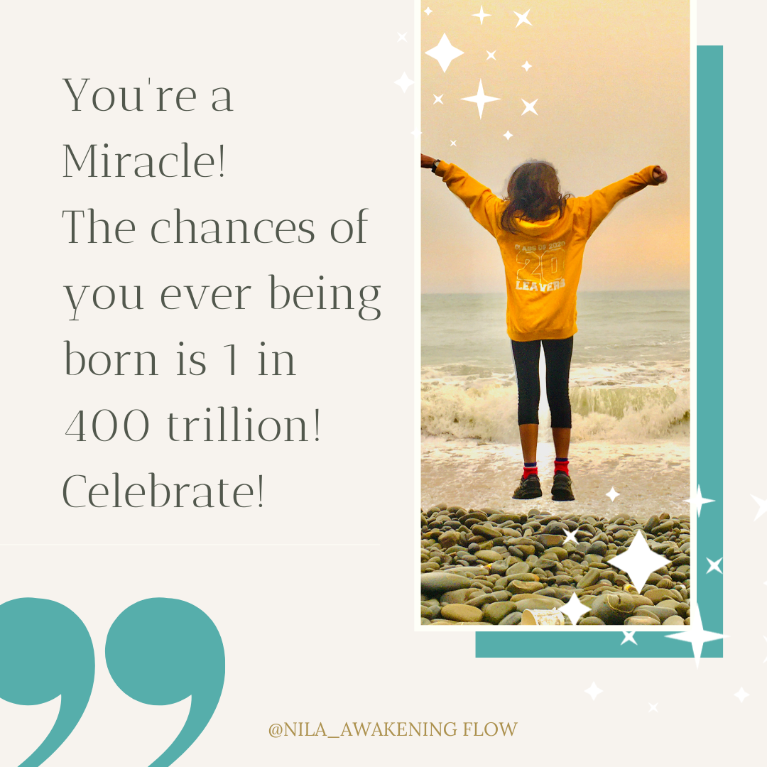 I smiled when I heard Chris Evans say on the radio that the chances of you being born, are roughly 1 in 400 trillion - What the…, I then hugged myself and everyone else – nearly the neighbour, but he was rushing so I held myself back! I researched this (as I always do)… but take a minute and just let that statistic land for you!